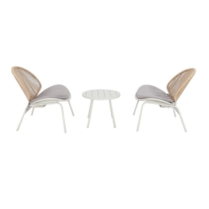 SILLON ACERO RATAN SINTETICO 2U + MESITA HAWAI BLANCO-BAMBU