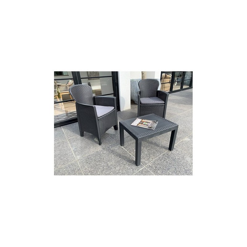 SILLON RATAN RESINA 2 U + MESITA QFPLUS ANTRACITA